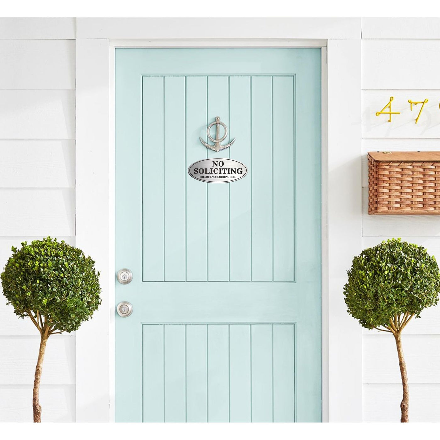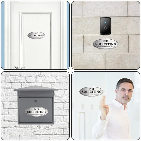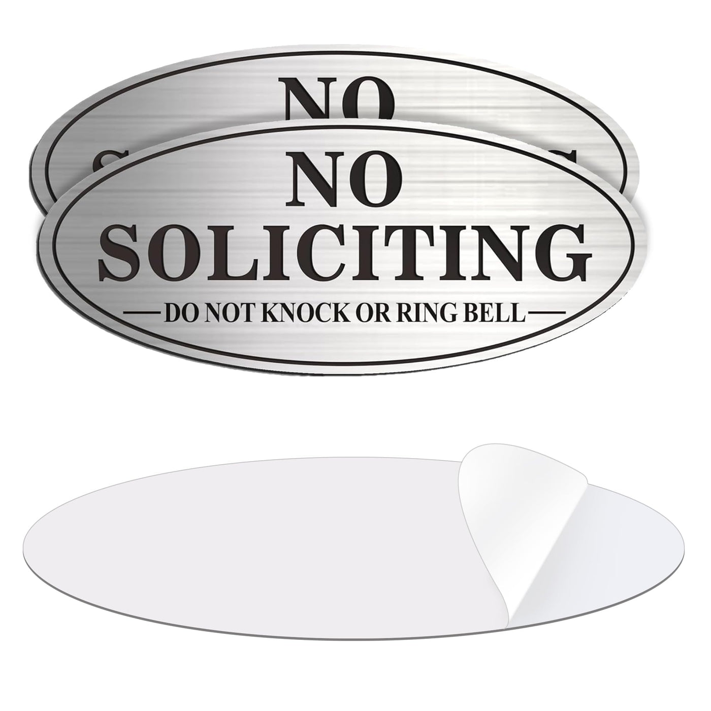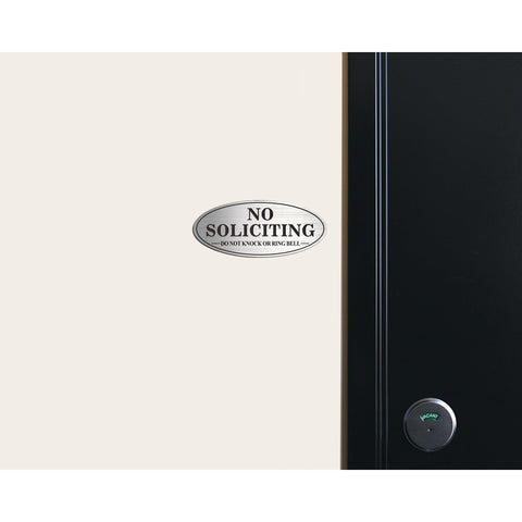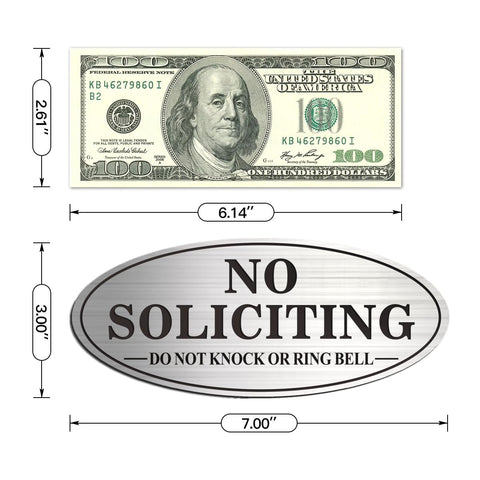 - 6. IDEAL SIZE FOR VARIOUS LOCATIONS: Measuring 7x3 inches, this oval No Solicitation Sign for House strikes the perfect balance in size—not too large, not too small. It fits perfectly on your front door, next to the doorbell, or near your mailbox.