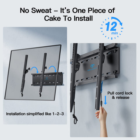 - SAFE TO USE: High quality steel construction ensures safety. This wall mount TV bracket has high standards. It has been tested to hold 4 times the weight they're rated to based on UL standard so you can rest assured that it will hold the weight of your TV. It also comes with a locking mechanism with quick release which easily secures your TV to the wall