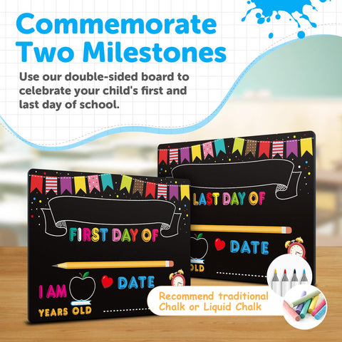 PETCEE First Day of School Board Sign - 11"x14" Double Sided Reusable and Erasable 1st First & Last Day of Preschool Pre-K Chalkboard Sign Photo Prop Gift Back to School Supplies for Kids Son Daughter Sale