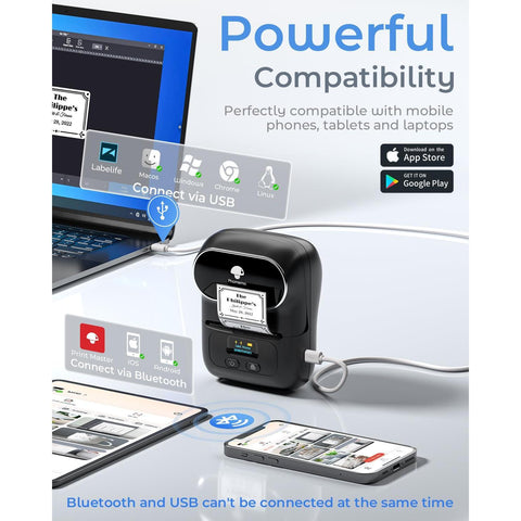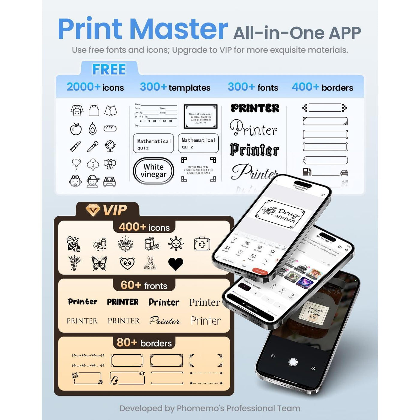 - Powerful APP- Phomemo-M110 Bluetooth label maker machine with variety label templates and can set up your own templates. You can edit and typeset labels, supporting batch printing to improve work efficiency
