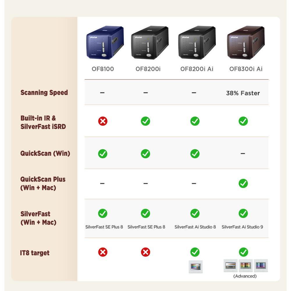 - [NewlyLaunched] OpticFilm 8300i Ai equipped with new generation of chip, which increase by 38% scan speed compared to the last model. Bundled SilverFast 9 included over 100 functions that have additional improvement make 8300i Ai becomes powerful
