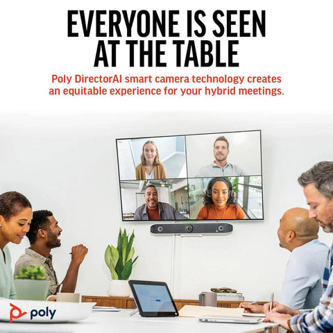 Details: Specifically engineered to improve video conferencing experiences-the Poly Studio X52 all-in-one video bar simplifies and enhances meetings. Bring meeting equality to attendees both in and out of the room with innovative audio and video experiences.Choose how you join a callProvide users all the flexibility they need to join any cloud video call with built-in apps, standards-based protocols, or by using their personal devices connected to the room system.Everyone is seen and heardEnsure everyone is represented equally on the call with quality audio and video paired innovative technologies by Poly that include pinpoint-accurate AI-enhanced automatic framing and smart audio filtering.Enterprise-grade managementPoly Lens, remote device management, gives you better visibility into workspaces across the entire organization. IT professionals can remotely monitor and troubleshoot Poly devices as well as streamline applying bulk software and policies.Sharp and clear opticsZoom in and see the smallest details with 20MP 4K UltraHD 95-degree FOV camera that's thoughtfully designed for medium spaces. Always present in the best light in spaces with sharp clear optics, true color, and low light compensation.Everyone is seen at the tableEncourage meeting engagement with intelligent video experiences that help remote participants feel connected. Poly DirectorAI smart camera technology creates an equitable experience for your hybrid meetings.Get going in minutesMid-sized rooms can be up and running in minutes, with the simple setup and all-in-one design. And with the powerful camera, mics, speakers, and built-in cloud video apps - you'll have everything you need to cover conferencing spaces.Hear and be heardSurround meeting participants with rich and immersive sound from built-in stereo speakers. Clearly pick up voices at the far end of the table and remove distractions from your meeting with Poly NoiseBlockAI and Acoustic Fence technologies.Join the way you want toConnect to nearly any cloud video service using built-in cloud video apps. Use the Poly Video App to connect into cloud video services through H.323 and SIP or connect to any cloud video platform from your PC by connecting over USB.Complete call controlInstantly take charge of calls and room video systems with the large 10" high-resolution touch display of the Poly TC10. Share content with a tap and get seamless access to your favorite cloud video apps on your room's video system.Easy management via Poly LensTake control of your deployment from anywhere via remote management with Poly Lens cloud-based device management software.
