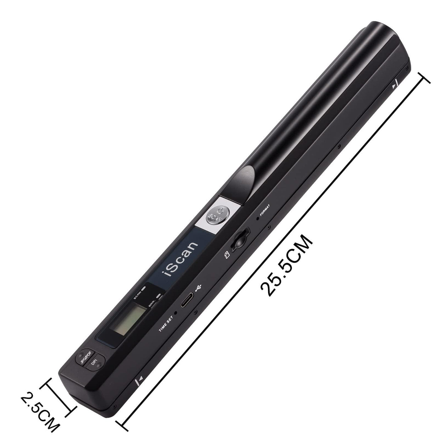- EASY OPERATION - Switch on, select color mode and resolution, press the "SCAN" button until the green LED lights up, scan the document, press it over (finished automatically after 3 minutes without operation).