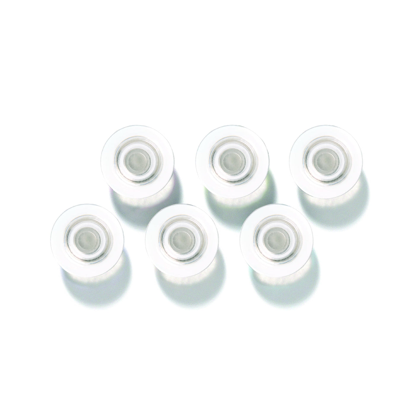 Details: Large magnets are extremely strong and able to securely hold a number of items on the surface of any magnetic, glass whiteboard or other marker board. Use the magnets to display photos, reference materials or anything else that you need to see at eye-level. Made of neodymium, the magnets can secure up to 6 pieces of paper on a magnetic glass whiteboard, and up to 15 on a standard surface whiteboard. Magnets are 0.45"W with a housing of 0.76"W. 6 per pack.