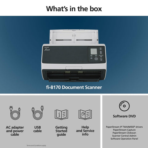Details: The fi-8170 scanner gives both large and small organizations unparalleled, real-world productivity with advanced feeding technologies and Clear Image Capture. Delivering the highest quality digital images into critical workflows, the fi-8170 is an ideal solution for customer onboarding, accounting, administration and mailroom applications.