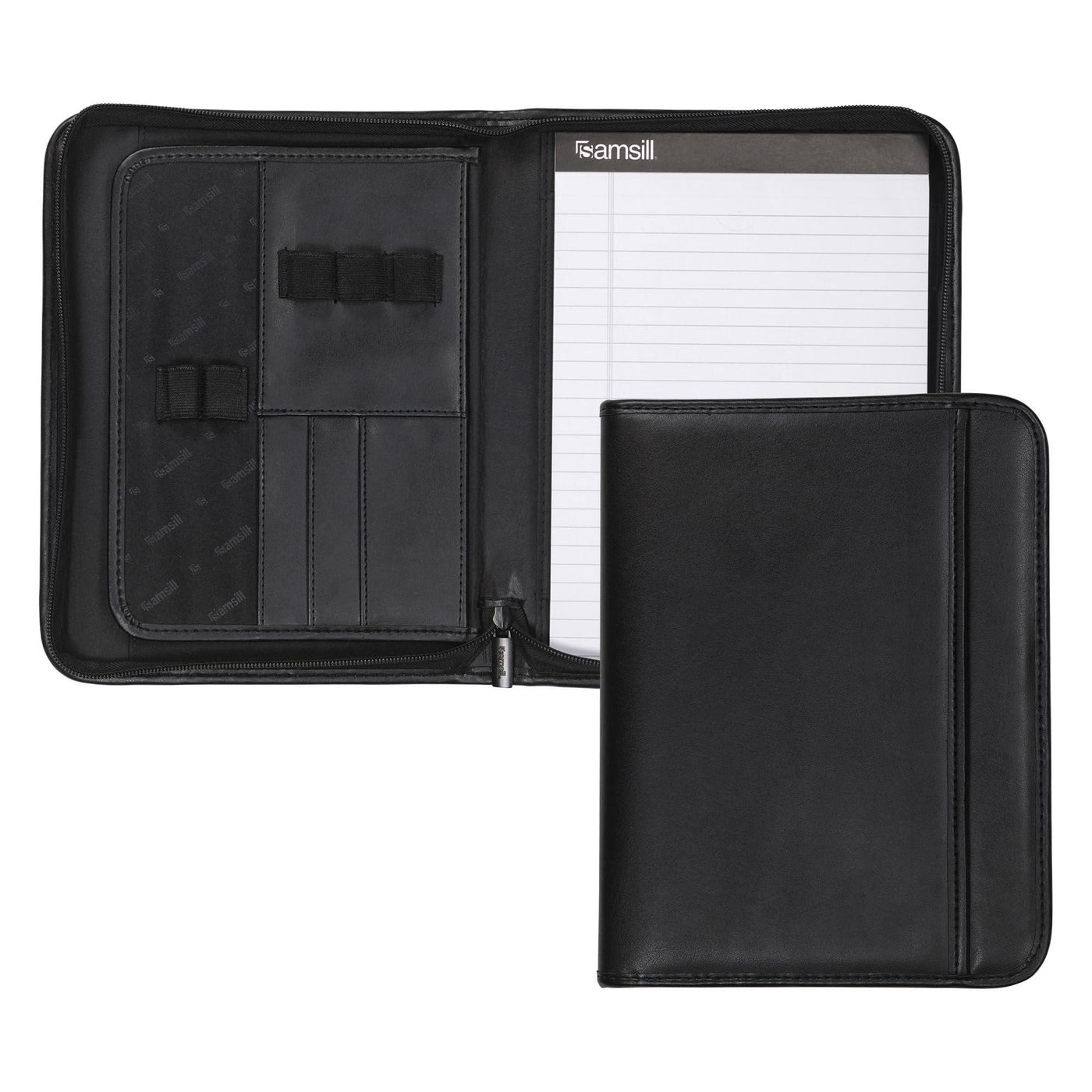 Details: A pad folio like no other. After considering the needs of modern-day professionals, we, at Samsill, are happy to say that we've come up with a business portfolio for women and men designed to make your life more comfortable and stylish. To put it simply, it’s the only faux-leather folder you'll ever need. Using synthetic leather, our business folder mimics the look and feel of premium Nappa leather to help you make a positive and lasting first impression. The minimalist design is a perfect fit for all environments – from Fortune 500 boardrooms to university classrooms. Our tablet portfolio even includes a universal 10.1-inch padded tablet sleeve and secure zip-around closure for the safety of all your gadgets, documents, and accessories. An expandable document pocket helps you store loose pages, letters, envelopes, leaflets, invites, and personal IDs. A standalone business card holder holds all your business cards in one place. Need to take some quick notes? Our portfolio case includes a refillable letter-sized writing pad (8.5” x 11”) and pen loop. If you wish to try out the best padfolio there is, click ‘Add to Cart’ and order the Samsill Professional Padfolio today!