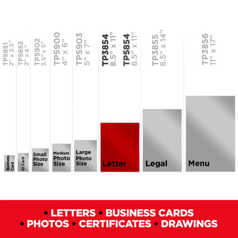 - FITS LETTER-SIZE POUCHES: One package contains letter-size pouches that fit items up to 8.9 in. x 11.4 in, ideal for laminator pouches