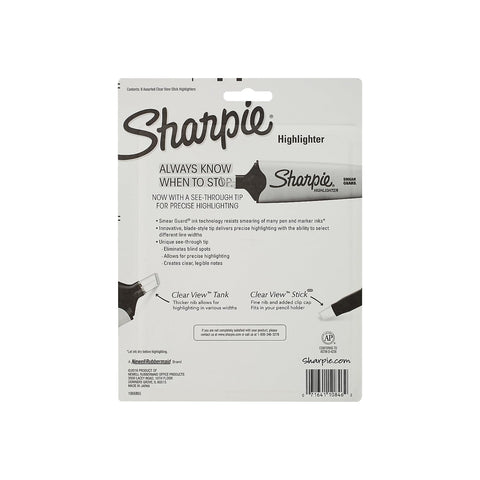 Details: Bring clarity and precision to your written text with the Sharpie Clear View Stick Highlighter. With the ability to create both wide and narrow lines, these highlighters are perfect for use in offices, schools, and Bible studies alike. Capture your reader's attention with ultra-vivid, smear-resistant ink that pops off the page. Designed for uninterrupted clarity, the clear, chisel tip allows you to continue highlighting with confidence and finesse. This pack contains eight assorted colors to diversify and enhance your marking experience.