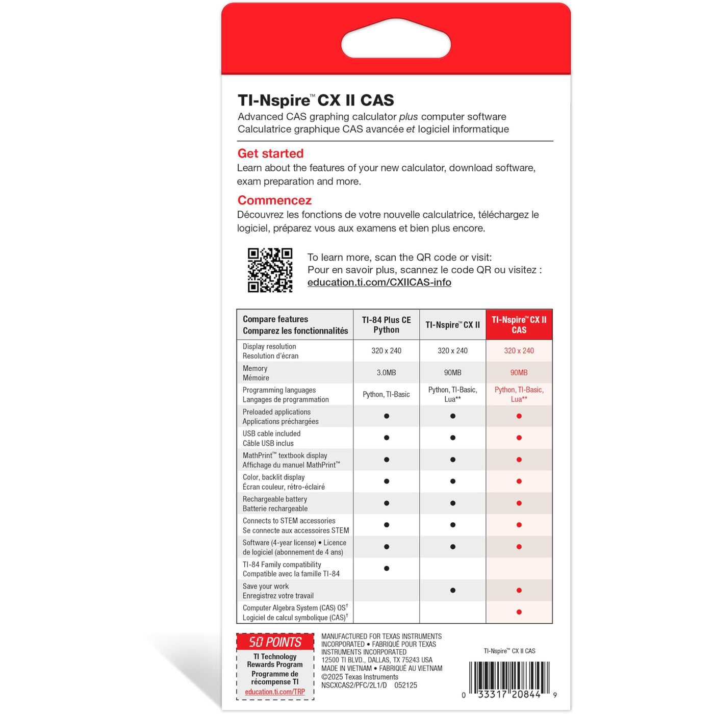 Details: Texas Instruments TI-Nspire CX II CAS Color Graphing Calculator Faster performance, added interactive visuals and easier-to-read graphics expand the TI-Nspire CX graphing calculators’. Animated path plot: Visualize function, parametric and polar graphs as they are drawn in real time. Dynamic coefficient values: Explore direct connections between dynamic coefficients in equations and graphs. Points by coordinates: Create dynamic points defined by coordinates, sliders or expressions quickly.