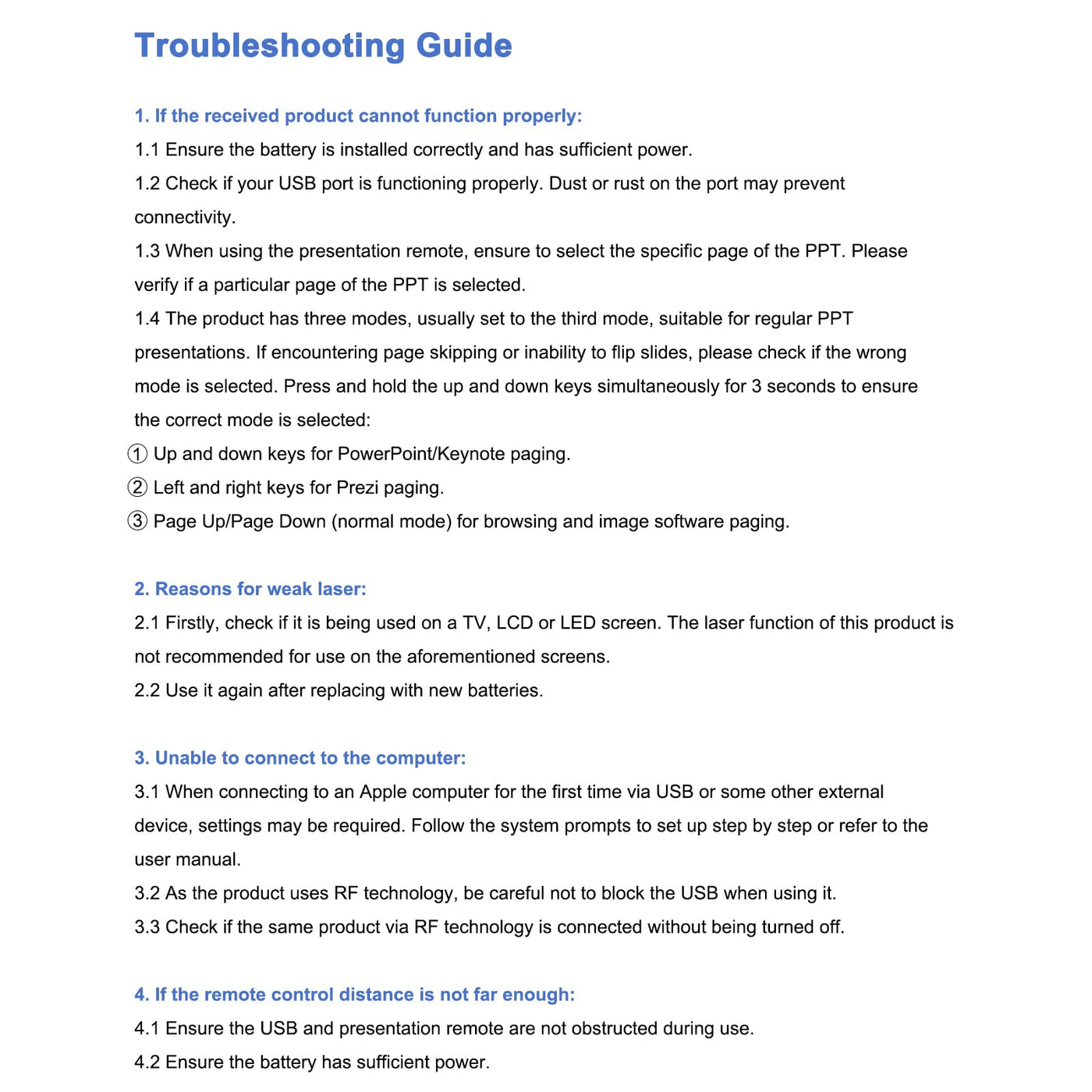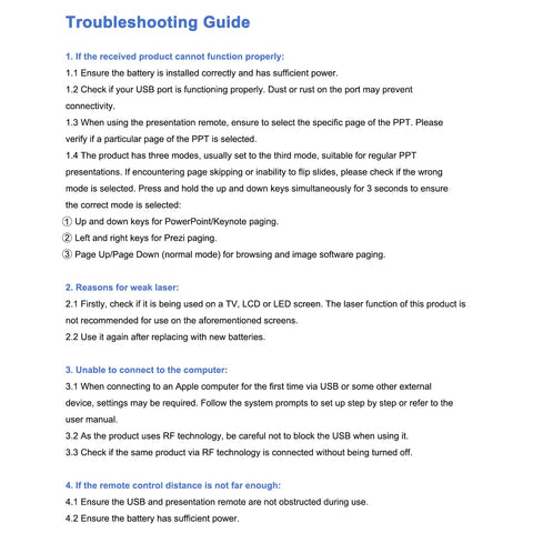 - 【BRIGHT RED POINTER & 100FT LONG WIRELESS RANGE】 Powerpoint presentation clicker with bright red light that is easy to see against most backgrounds ((Not Recommended for LCD/LED/TV Screens);Wireless range of powerpoint presenter up to 100 foot, free to move around even in a large room