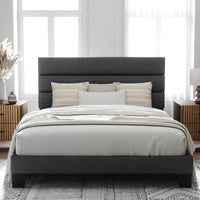 - Minimalist & Noise-Free: Bed frame queen size with a padded upholstered headboard, suitable for various decors; EVA mute bar prevents noise from friction, no squeaking or creaking