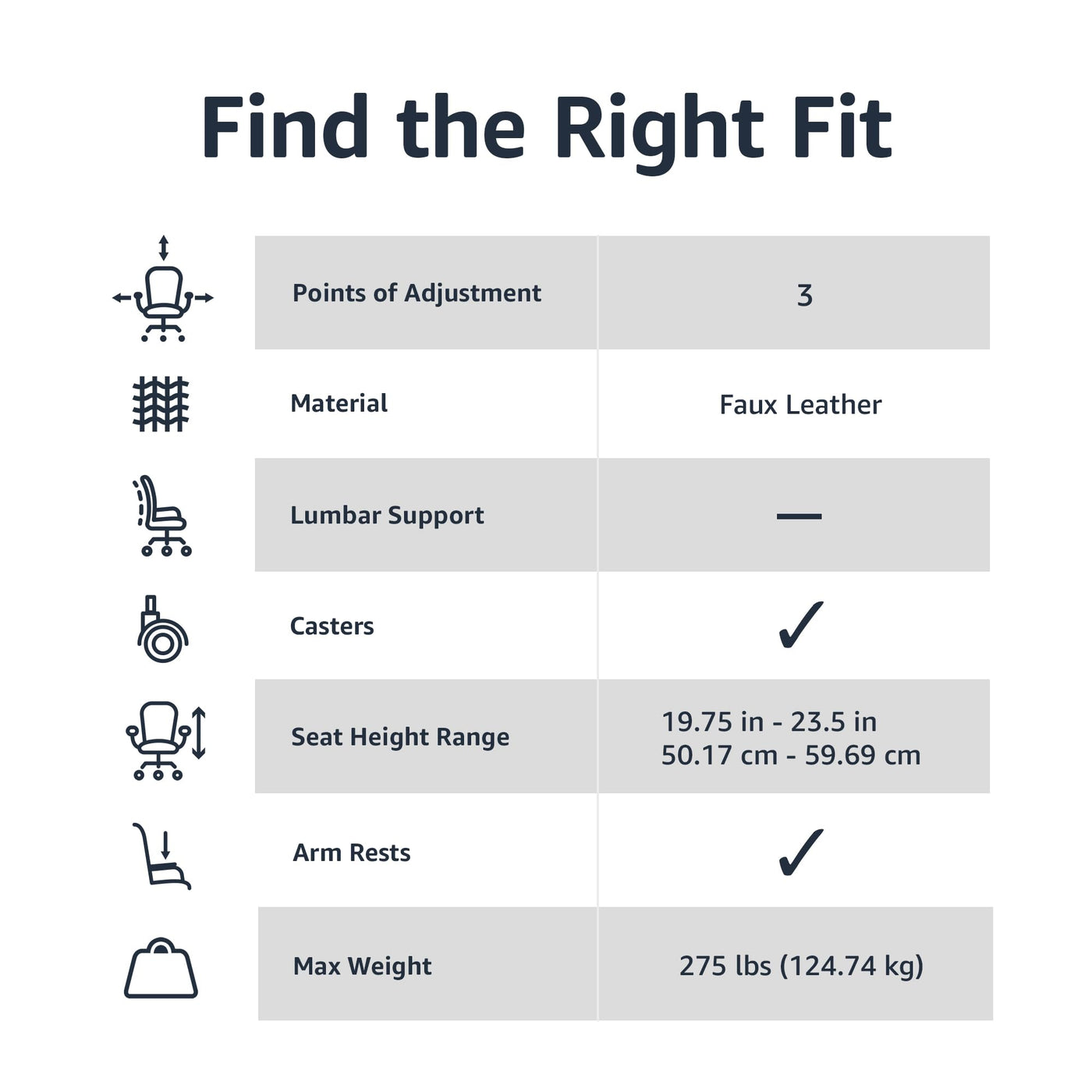 - PRODUCT SPECIFICATIONS: Product Dimensions: 23.75 x 26 x 38.25 - 42 inches (WxDxH); seat width: 19.5 inches; seat depth: 17.75 inches; arm height: 26.25 - 30 inches