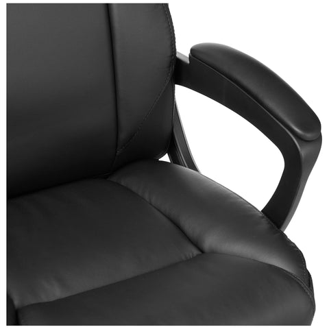 - COMFORTABLE DESIGN:Puresoft PU upholstery in Black; contoured padded seat, backrest, and armrests for comfort; durable caster wheels for smooth-rolling mobility