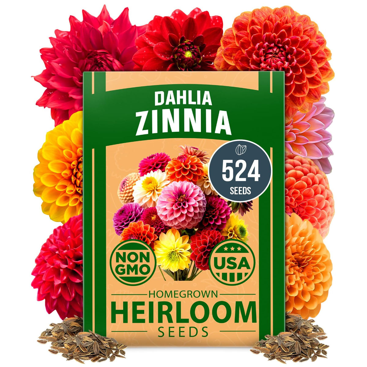 - 524 PREMIUM SEEDS β BRILLIANT COLOR, FAST GROWTH: This large pack includes 524 USA-packed, high-germination Zinnia Dahlia seeds that bloom into stunning double flowers in red, pink, orange, white, and more. Easy to grow, beginner-friendly, and perfect for bouquets, borders, and containers. Blooms in just weeks and lasts all summer!