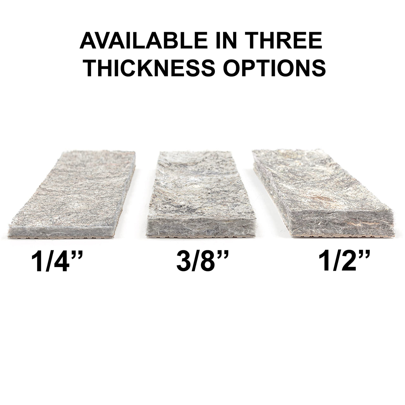 - DURABLE COMFORT CUSHION: Choose from three felt thickness options - 1/4", 3/8”, and 1/2" - offering various levels of soft feel underfoot, flooring protection, sound absorption, insulation, and all-around extra comfort for your area rugs in any room around your home.