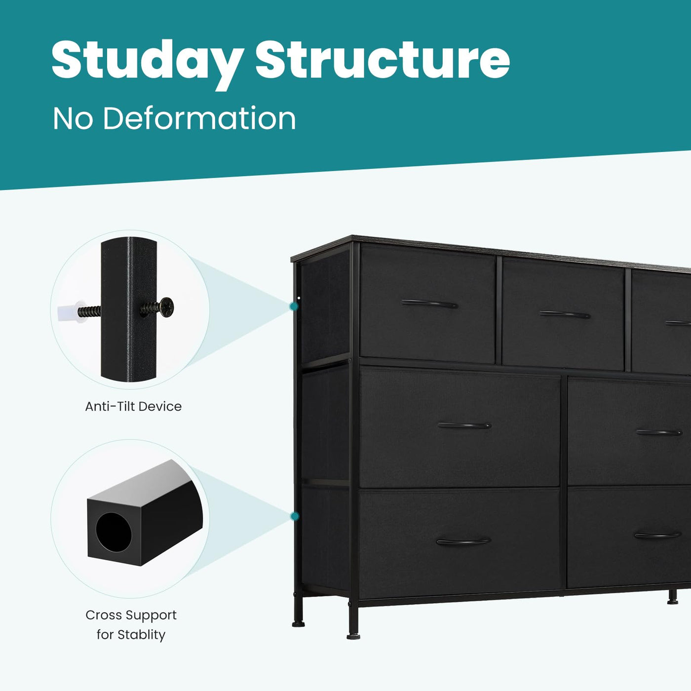 - 【Sturdy & Safe Materials】Crafted with high-quality non-woven fabric drawers and a breathable synthetic fiber structure, this dresser is wear-resistant, safe for all ages, and easy to clean—just wipe with a damp cloth. Smooth handles make opening and closing a breeze.