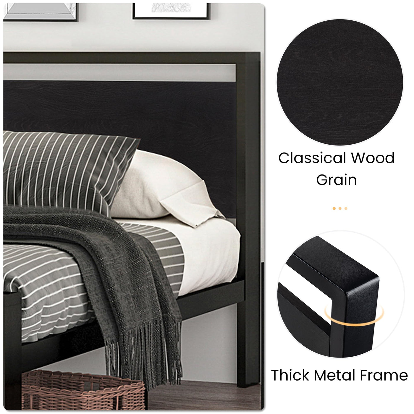 - Unique Design: The combination of rustic style headboard and footboard with retro frosted metal slats creates a strong industrial/rustic flair, adding an industrial and unique touch to your room. The headboard consists of a waterproof & scratchproof wood board