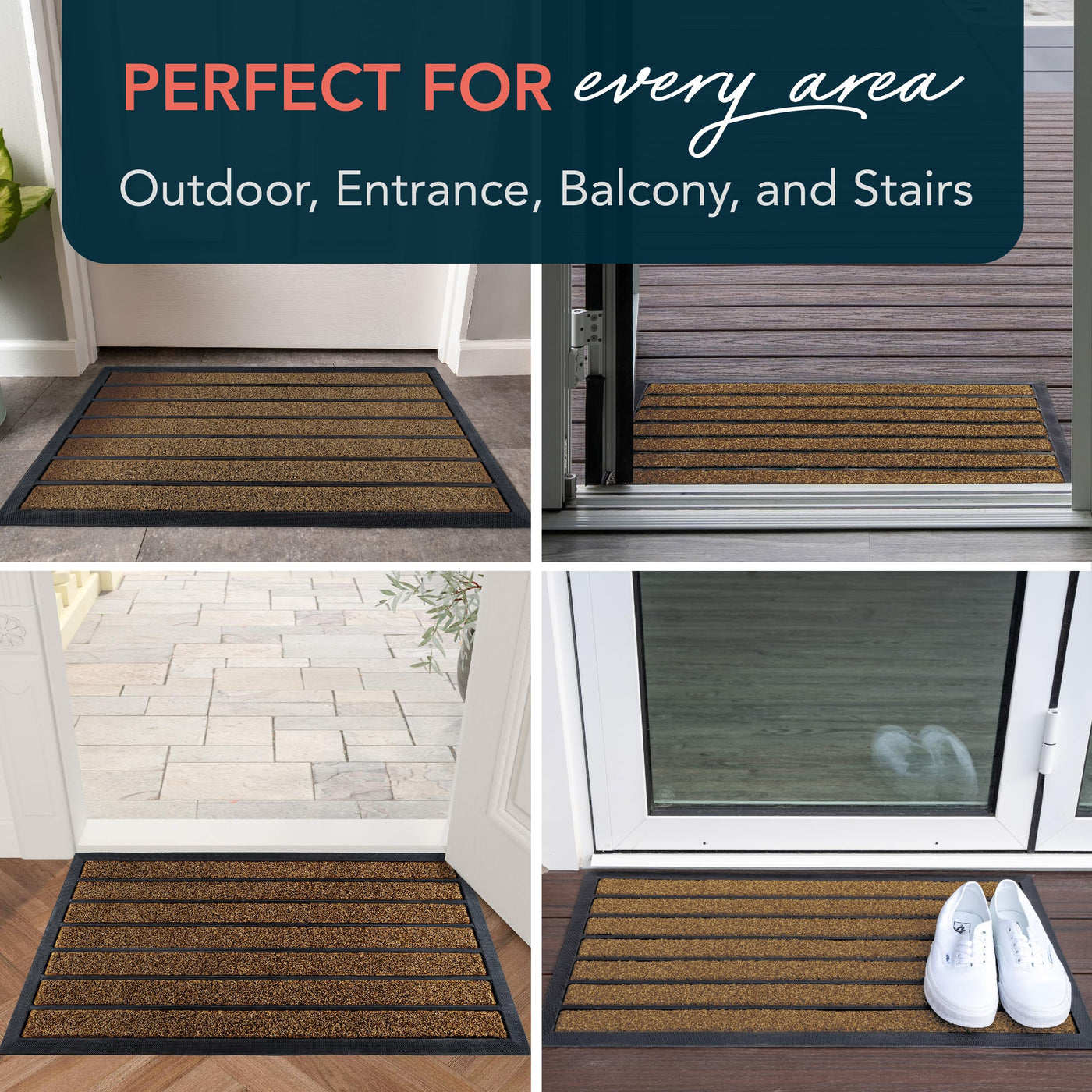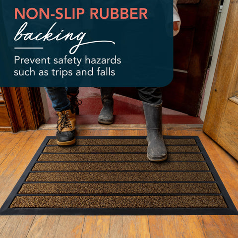 - Leak-Proof And Non-Slip: Our premium outdoor rug is backed with PVC rubber to trap water and preserves stability during heavy rains and snow. Entry rug will not slide and can withstand high traffic.