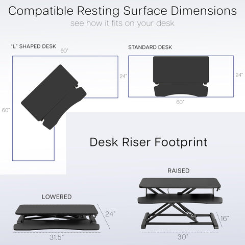 - Space Efficient 31.5" Surface - The top surface measures 31.5” x 15.7”, which maximizes space while still providing room for dual monitors. The 31.3" x 11.8" (10.5" in center) keyboard tray raises in sync with the top surface to create a comfortable workstation.
