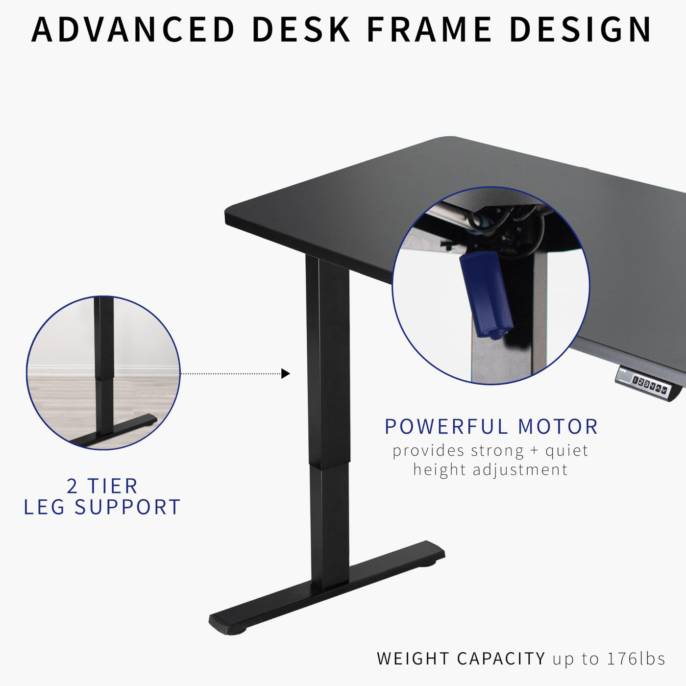 - Powerful Electric Motor: Enjoy a height range of 29.3" to 48.5" with this frame’s powerful motor and strong legs using precise telescopic height adjustment