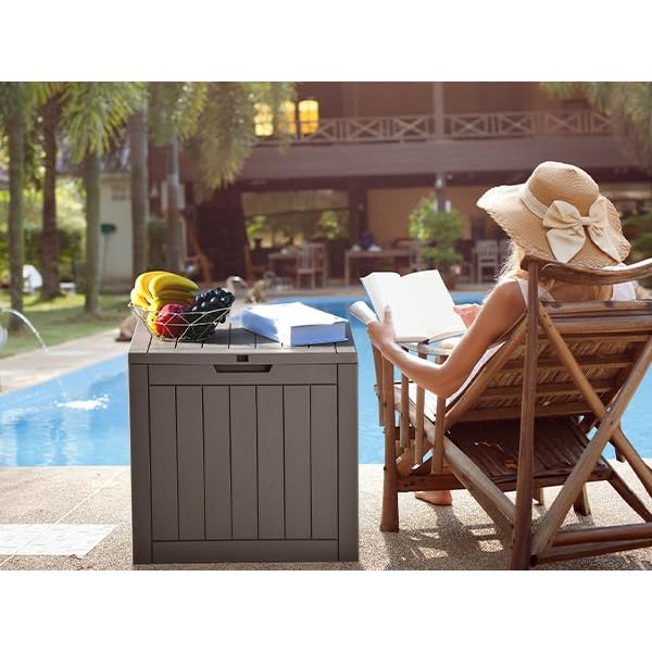 - VERSATILE APPLICATION- This deck box has a 30-gallon capacity that provides ample room for daily indoor and outdoor storage of cushions, garden tools, etc.; Can also be used as a side table, patio seating, storage ottoman, or footstool.