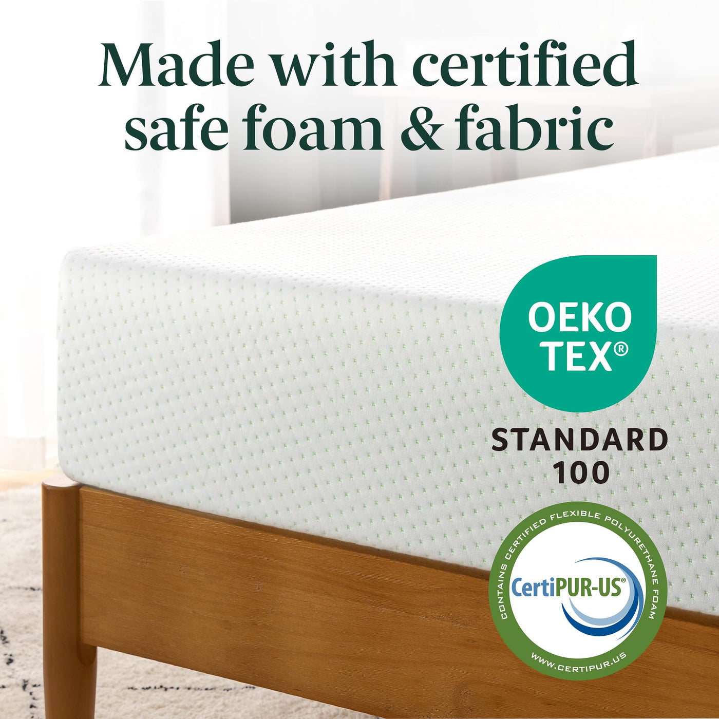 - CERTIFIED SAFE MATERIALS – Crafted from high-quality CertiPUR-US certified foam and wrapped with an OEKO-TEX certified mattress cover all produced without the use of harmful chemicals for safer, healthier sleep