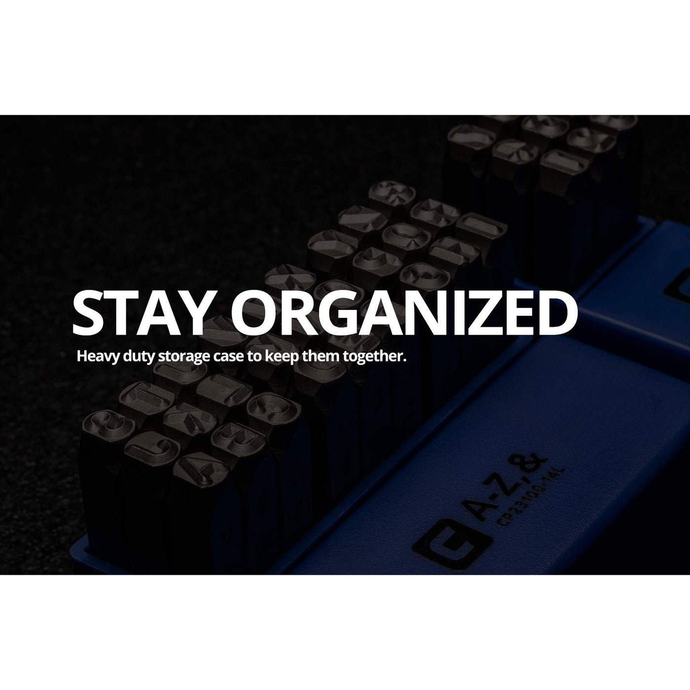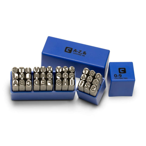 Details: The Capri Tools Professional 1/4 in. Letter and Number Stamp Set is made from premium components. We use premium Chrome Vanadium steel that's been differential heat treated to achieve optimal performance and durability: 62 HRC hard stamping end produces high quality imprints and keeps the edges sharp, and 42 HRC tough hammering end excels at absorbing repeated hammer strikes and maintaining durability. Large, true-to-size, and expertly machine letters/numbers ensure the imprints are precise and refined on leather, wood, copper, brass, aluminum and mild steel. Each stamp has engraved sizing and identification on the front side, making is easy to fine the right stamp and the right orientation. Includes 36 stamps: letters A-Z in uppercase, the ampersand &, and numbers 0-9. Comes in heavy-duty storage cases.