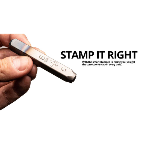 - Find the right stamp and orientation easily with engraved sizing and letter identification on the front side of each stamp