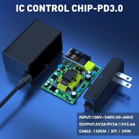 - PD3.0 USB Type C Charger - Based on PD3.0 ic chip, the fast charger support nintendo switch and tv dock mode and android phone or other type c charging port device. 2.5 hours charge time for most devices, Auto output suitable power according to charging devices, from 5v2a to 15v2.6a.