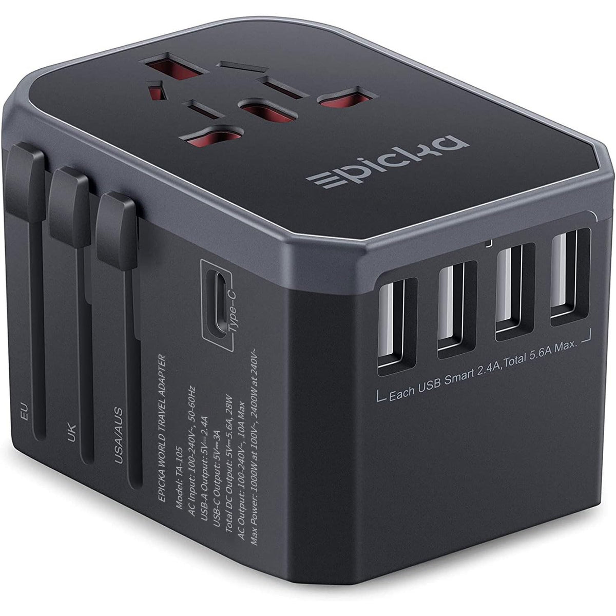 - 6 IN 1 TRAVEL ADAPTER - Charge up to 6 devices simultaneously at high speed with 4 USB-A ports (2.4A), 1 USB-C port (3A), and 1 AC socket. Ideal for charging iPhones, laptops, tablets, power banks, cameras, headsets, and more.