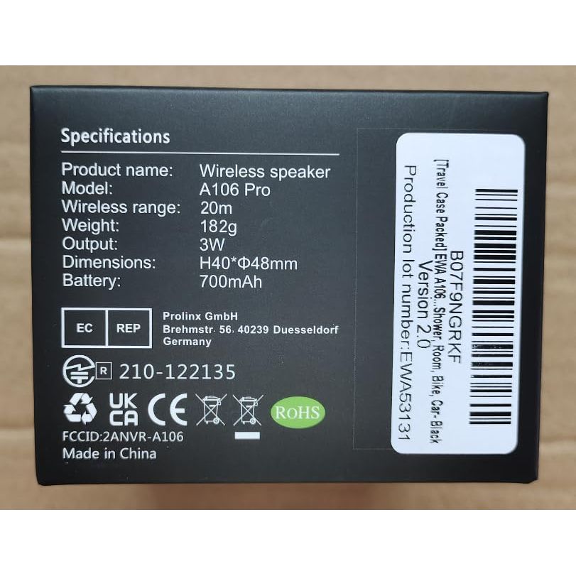 EWA Travel Case Packed, A106 Pro Portable Bluetooth Speaker with Custom Bass Radiator, Brief Design, IP67 Waterproof, Perfect Mini Speaker for Shower, Room, Bike, Car (Black) Sale