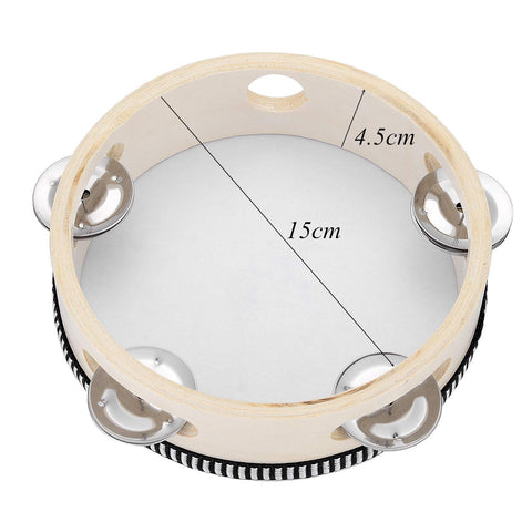 Hand Held Tambourine Drum 6 inch Bell Birch Metal Jingles Percussion Gift Musical Educational Drum Instrument for KTV Party Kids Games (6 inch) Sale