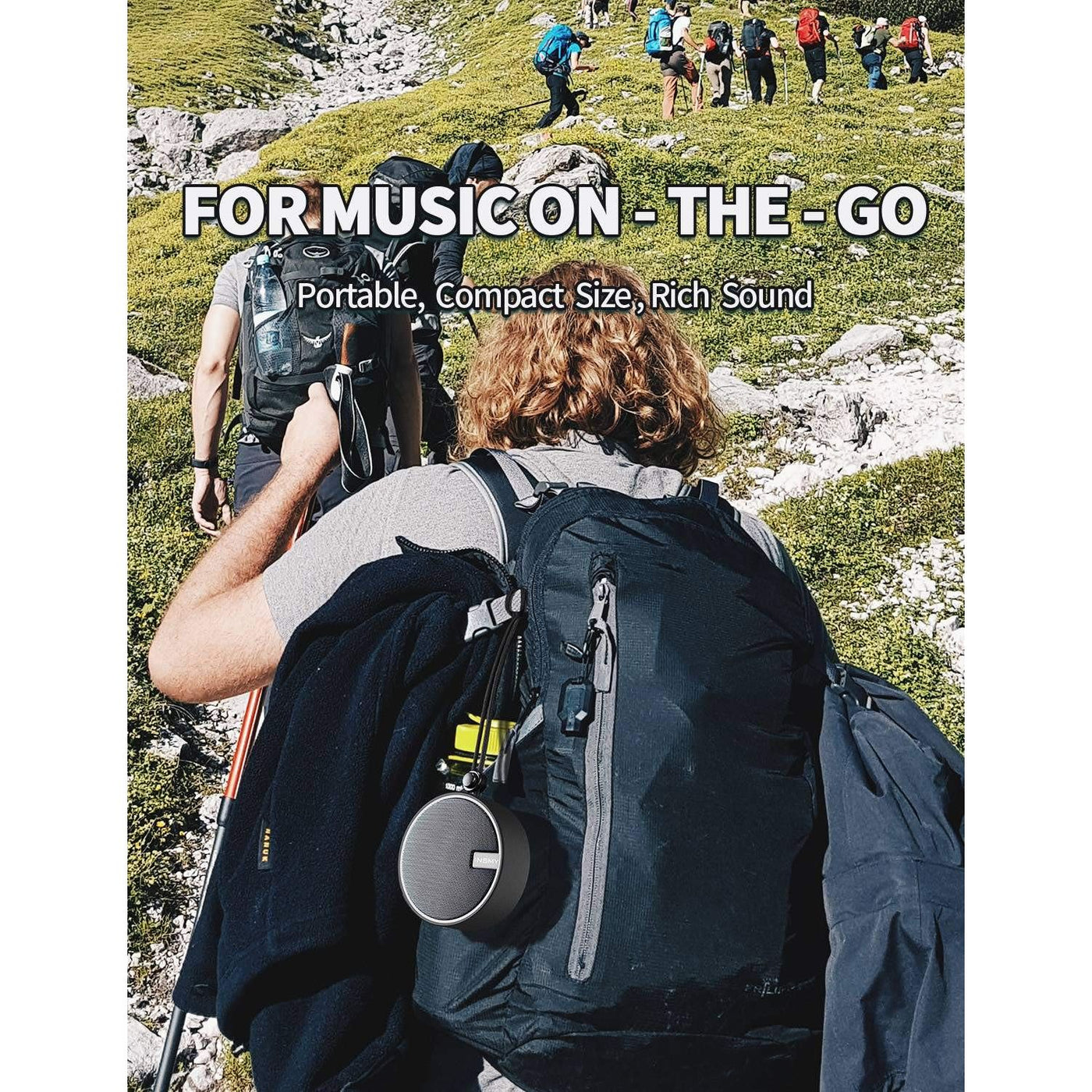 - 【IP67 WATERPROOF EVEN FULLY SUBMERSIBLE】Can be fully immersed up to 1 meter for about 30 minutes underwater. Featuring shock-absorbent materials, C12 shockproof portable travel speaker is primed for every type of weather and terrain, hiking, camping, running, and more. Perfect for Kayaking, boating, paddle boarding, and fishing. No worries about weather and outdoor condition, making this shower Bluetooth speaker the perfect companion for the pool beach trail, or shower.