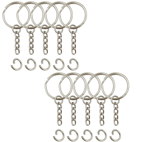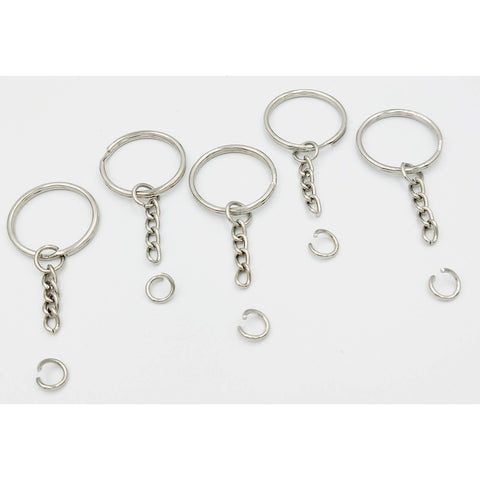 - Split Key Ring with Chain and Open Jump Rings, Nickel Plated, 1 inch 25mm, 50Pack