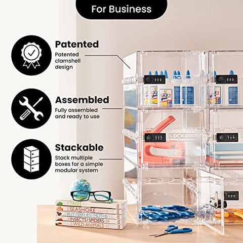 - Professional Medium Combination Lock Box - Enjoy hassle-free lockable storage with our simple 3-digit combination lock box. The Lockabox One arrives fully assembled, ready to protect your medicines, food, or personal items in any space you choose. Made from food and medical-grade polycarbonate, it has long-lasting durability. This means whether you are looking for a fridge lock box, locking medicine box, or phone lock box, this is a must-have product for all.