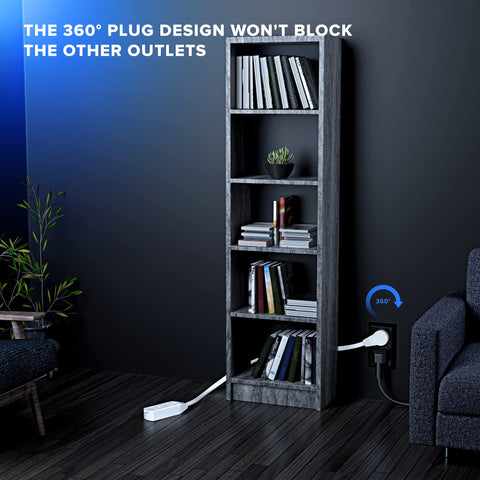 Maximm Cable 10 Ft 360° Rotating Flat Plug Extension Cord/Wire, 16 AWG Multi 3 Outlet Extension Wire, 3 Prong Grounded Wire - White - UL Certified Sale