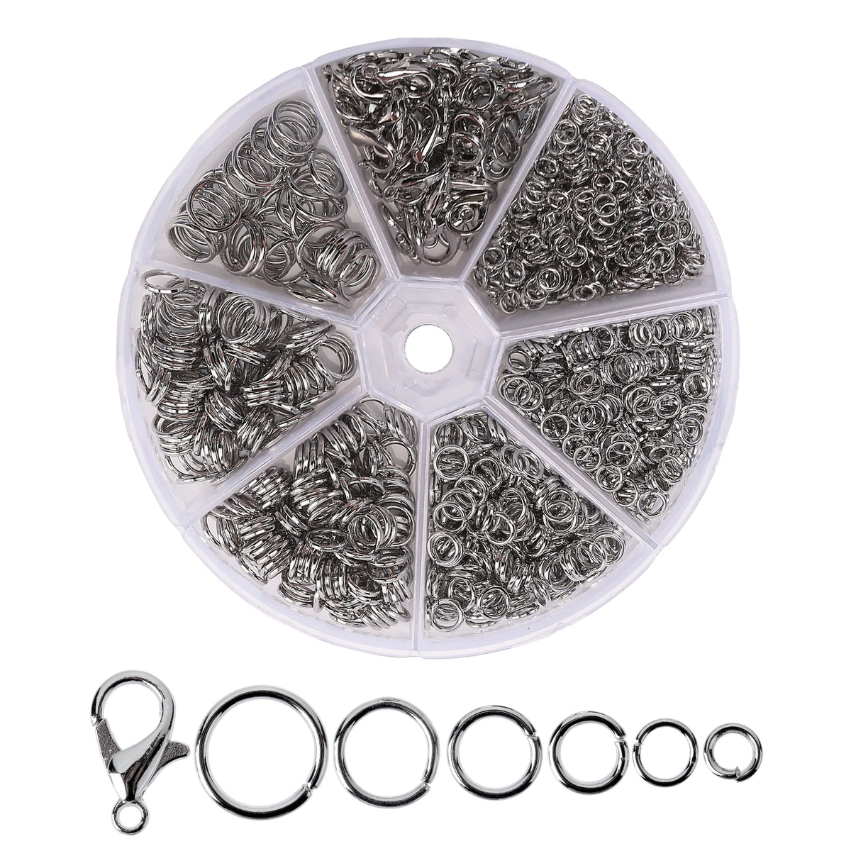 - Package includes 40 pcs lobster clasps and 974 pcs jump rings in 6 different sizes for jewelry making, packed in a plastic case for easy storage and picking up.