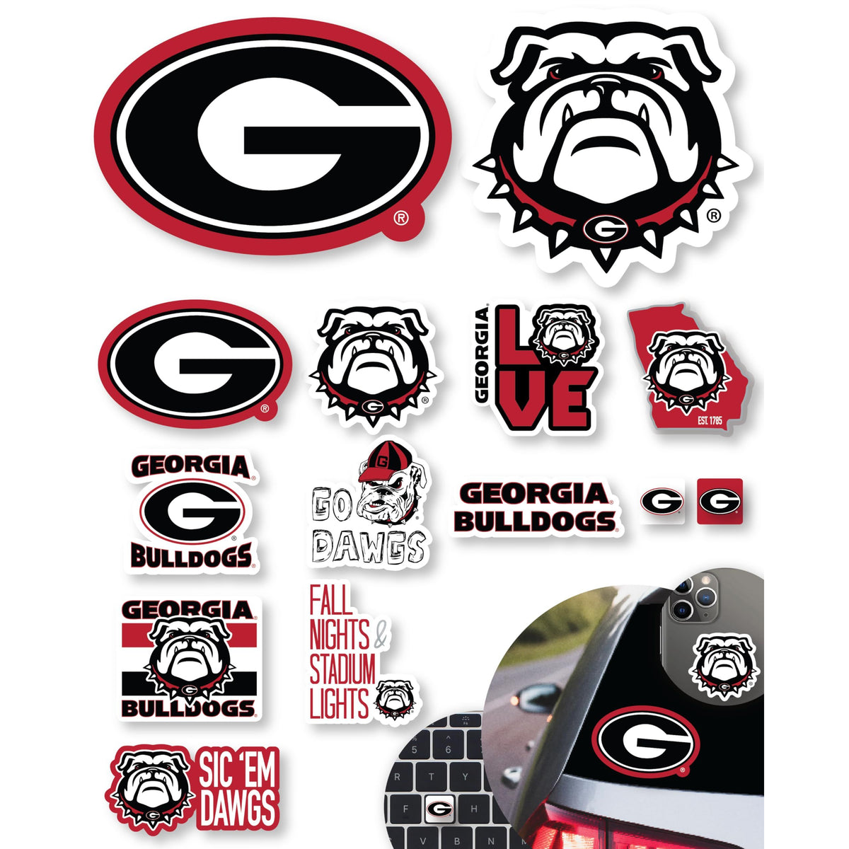 UGA Stickers for Gift, Car, Water Bottle, Laptop, and Phone for Football Fans and University Graduates (Georgia Bulldogs)